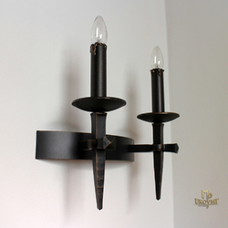 Historická nástenná lampa ANTIK s dvoma sviečkami je určená do interiérových priestorov v historickom štýle. Dizajnové svietidlo je zárukou vysokej kvality. V ponuke nájdete aj ďalšie typy svietidiel ANTIK, ktoré je možné vzájomne kombinovať: 1-sviečková nástenná lampa a 6-sviečkový luster. Luxusné svietidlo je v ponuke v čiernej farbe, zlatej, striebornej, medenej a zelenej patine. Svietidlo je vyrobené na Slovensku v ateliéri umeleckého kováčstva UKOVMI, spĺňa európske smernice a má ATEST - osvedčenie o typovej skúške výrobku.
